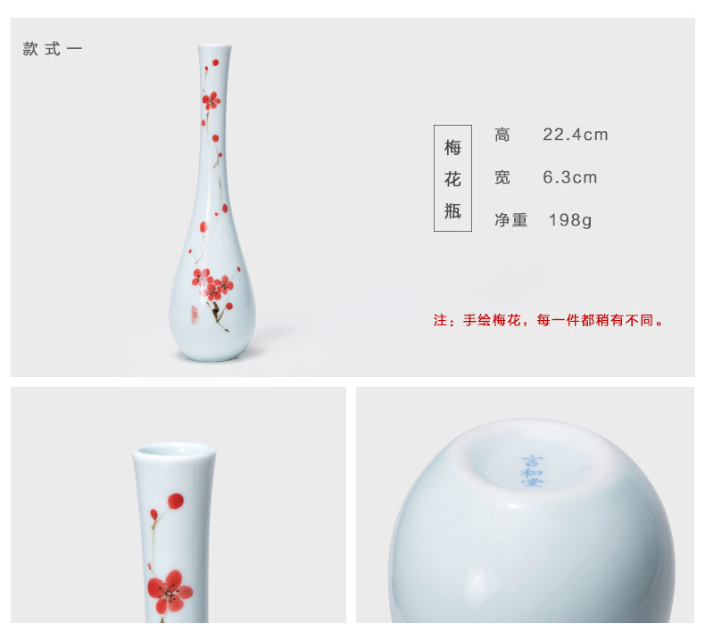 青瓷手绘花器, 兰花、梅花瓶任选